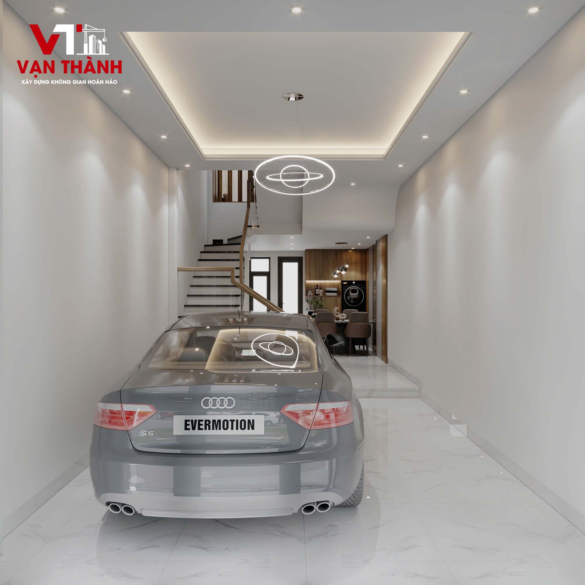 Tầng trệt được bố trí cửa cuốn an toàn – tiện lợi, phù hợp với những căn nhà phố có nhu cầu để xe hoặc kinh doanh.